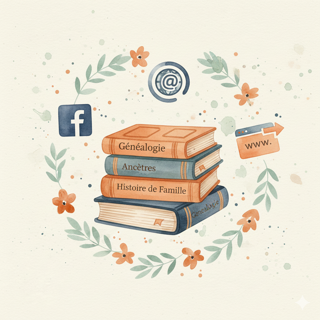 Que ce soit pour des illustrations, des conseils en organisation, trouver des centres d’information, apprendre dans un manuel, il est nécessaire de garder une trace de nos sources documentaires. La communauté généalogique est très active et j’ai trouvé plein de renseignements, de conseils, de savoir partagés sur les réseaux sociaux. Internet bien sûr est une grande source d’inspiration. De plus, si on apprend grâce aux autres généalogistes, la moindre des choses est d’en être reconnaissant et de les citer à notre tour dans nos écrits. Les généabloggeurs, les challenges d’écriture nous inspirent et nous motivent à poursuivre nos recherches. C’est avec plaisir que je partage avec vous mes ressources documentaires.