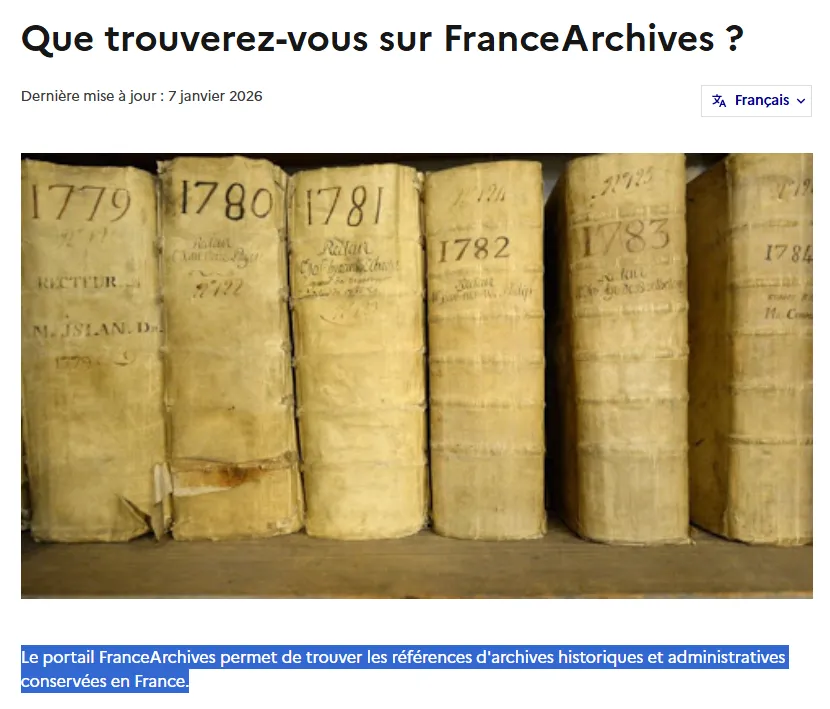 Essentielles aux généalogistes, les AD proposent les actes de naissances, de mariage et de décès dès 1791 mais aussi les actes paroissiaux pour les dates antérieures. De plus, vous pouvez y trouver les tables décennales, les registres et fiches matricules, les recensements, des cartes postales anciennes, des cartes géographiques, le cadastre et bien d’autres sources d’archives. Sur place, vous aurez accès à d’autres documents. C’est gratuit et l’accueil bienveillant. Voici par exemple, les trois sites que je visite le plus pour mes généalogies familiales.